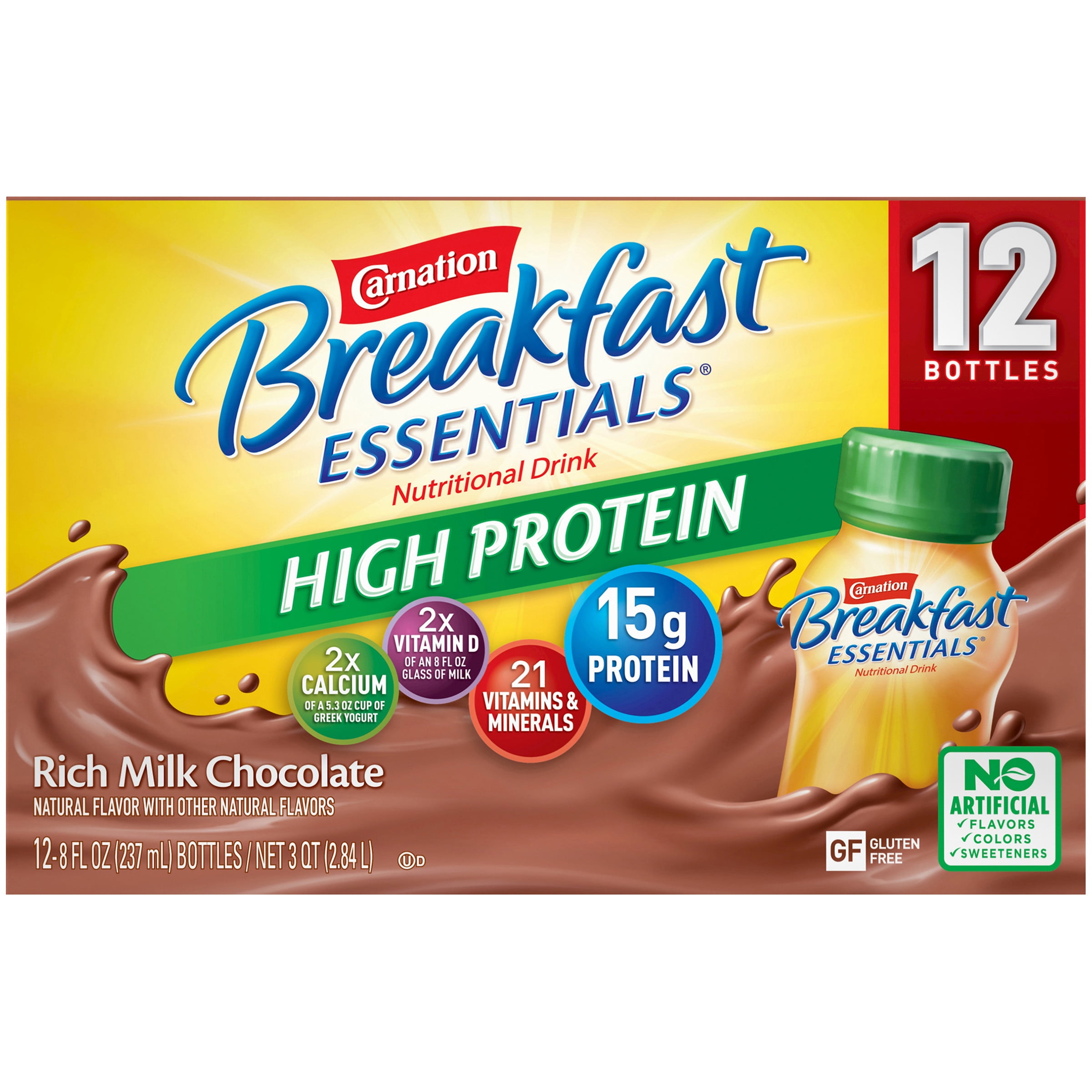 Carnation Breakfast Essentials High Protein Rich Milk Chocolate 12 8 Fl Oz Bottles Walmart Com